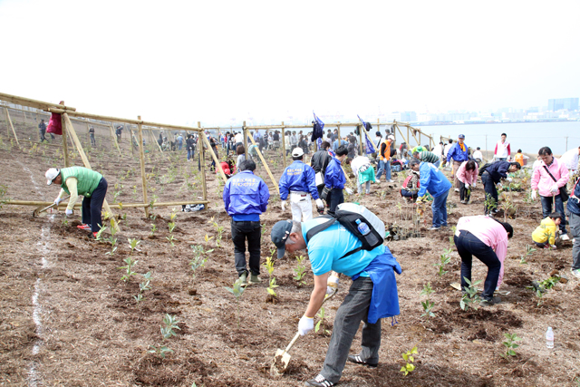 快晴の中 東京湾 「海の森」で植樹をしてきました。