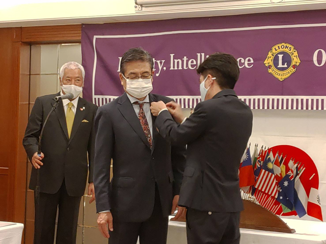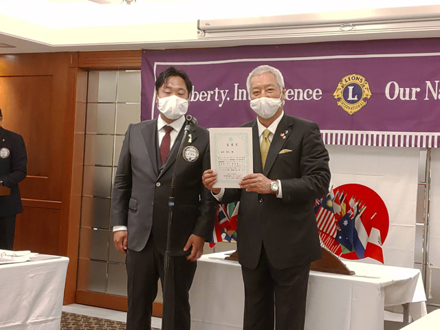 新型コロナウィルス禍中、出航例会 クラブ三役引継 委嘱状伝達。